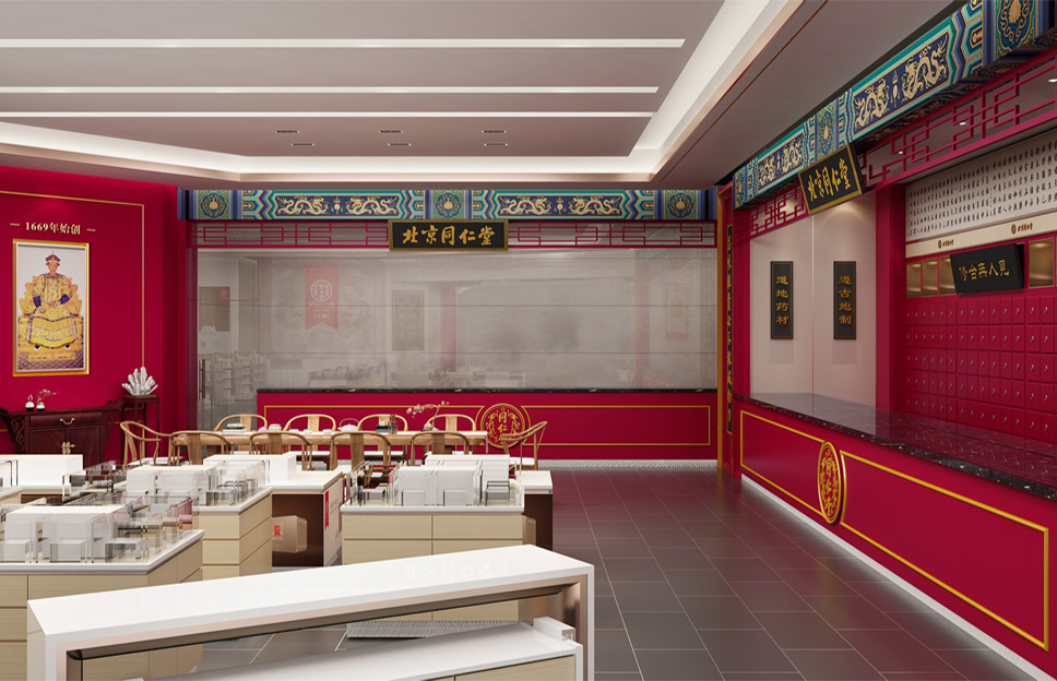 在定位設(shè)計(jì)北京同仁堂專柜形象之前,我們做了深入細(xì)致的市場(chǎng)調(diào)研,同時(shí)對(duì)同仁堂的文化進(jìn)行了系統(tǒng)研究,尋根溯源,找到了同仁堂文化的根源,即儒家“仁義”文化。同仁堂創(chuàng)始人為樂顯揚(yáng),樂族姓氏源于官位,出自西周初期官吏大樂正,負(fù)責(zé)整個(gè)王朝的禮教之事。而儒家文化的核心是“禮樂仁義”,李華清項(xiàng)目團(tuán)隊(duì)在同仁堂原有的文化基礎(chǔ)上加上了“禮樂”,使同仁堂文化更系統(tǒng)完整,同時(shí)把藥店空間設(shè)計(jì)專柜系列命名為“禮器之重”