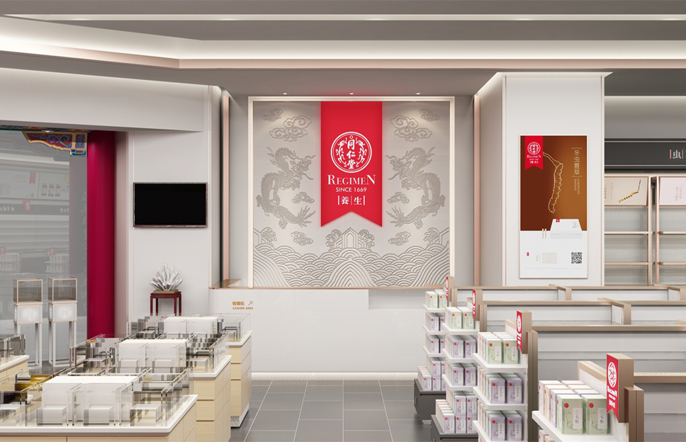 隨著更多年輕人對(duì)養(yǎng)生的意識(shí)越來越強(qiáng),必須要適應(yīng)他們的消費(fèi)習(xí)慣,而門店終端形象直接就影響著商品的成交率。于是為了迎合當(dāng)下時(shí)代的發(fā)展,提升年輕市場(chǎng)的占比,我們?cè)谏?jí)了養(yǎng)生專柜后,對(duì)同仁堂參茸蟲草專賣店也進(jìn)行了重新開發(fā)升級(jí)。